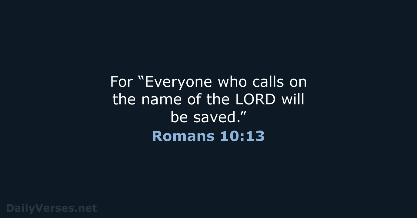 For “Everyone who calls on the name of the Lord will be saved.” - Romans 10:13 NLT