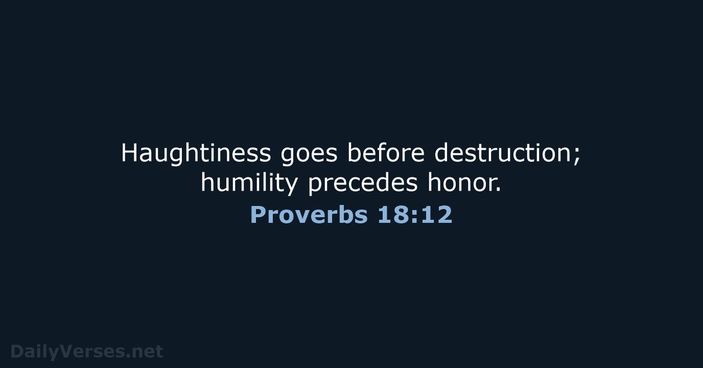 Haughtiness goes before destruction; humility precedes honor. - Proverbs 18:12 NLT