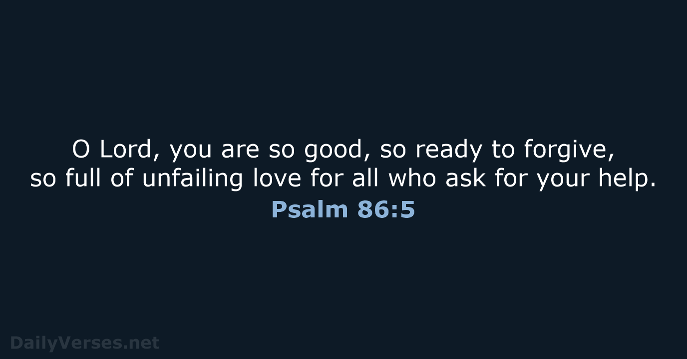 O Lord, you are so good, so ready to forgive, so full of unfailing love for all who ask for your help. - Psalm 86:5 NLT