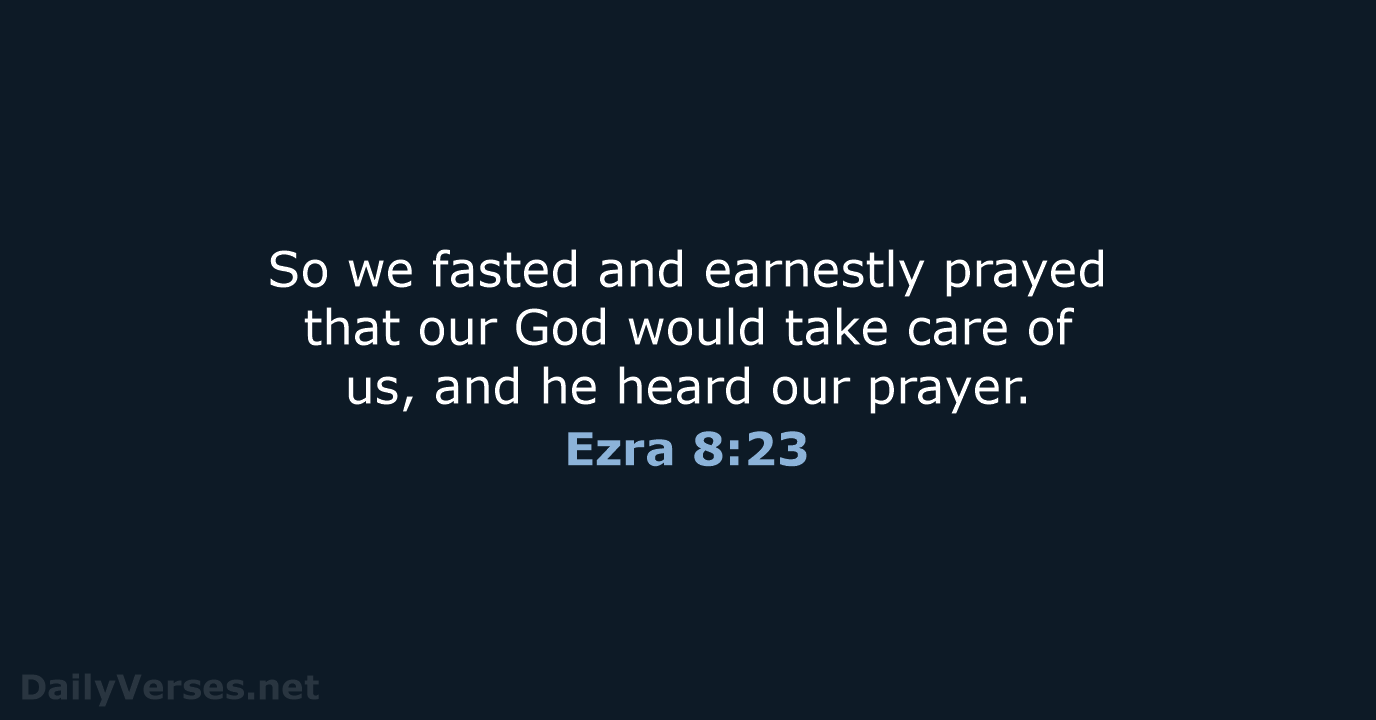 In today’s world, where self-reliance and human solutions are often prioritized, Ezra 8:23 offers a countercultural message. In moments of crisis, danger, or uncertainty, people often look for immediate, tangible solutions—whether through technology, finances, or personal strength. However, this verse reminds believers that true security and provision come from God. Fasting and prayer, as demonstrated by Ezra, are powerful spiritual practices that reflect humility, dependence, and trust in God’s provision.