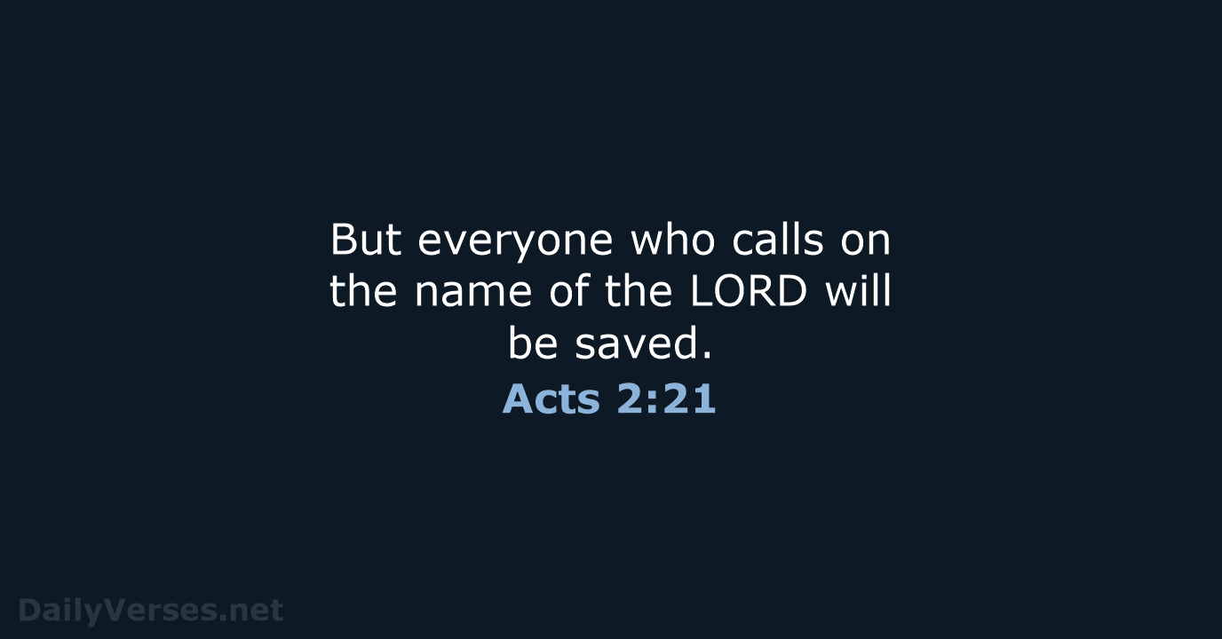 But everyone who calls on the name of the Lord will be saved. - Acts 2:21 NLT