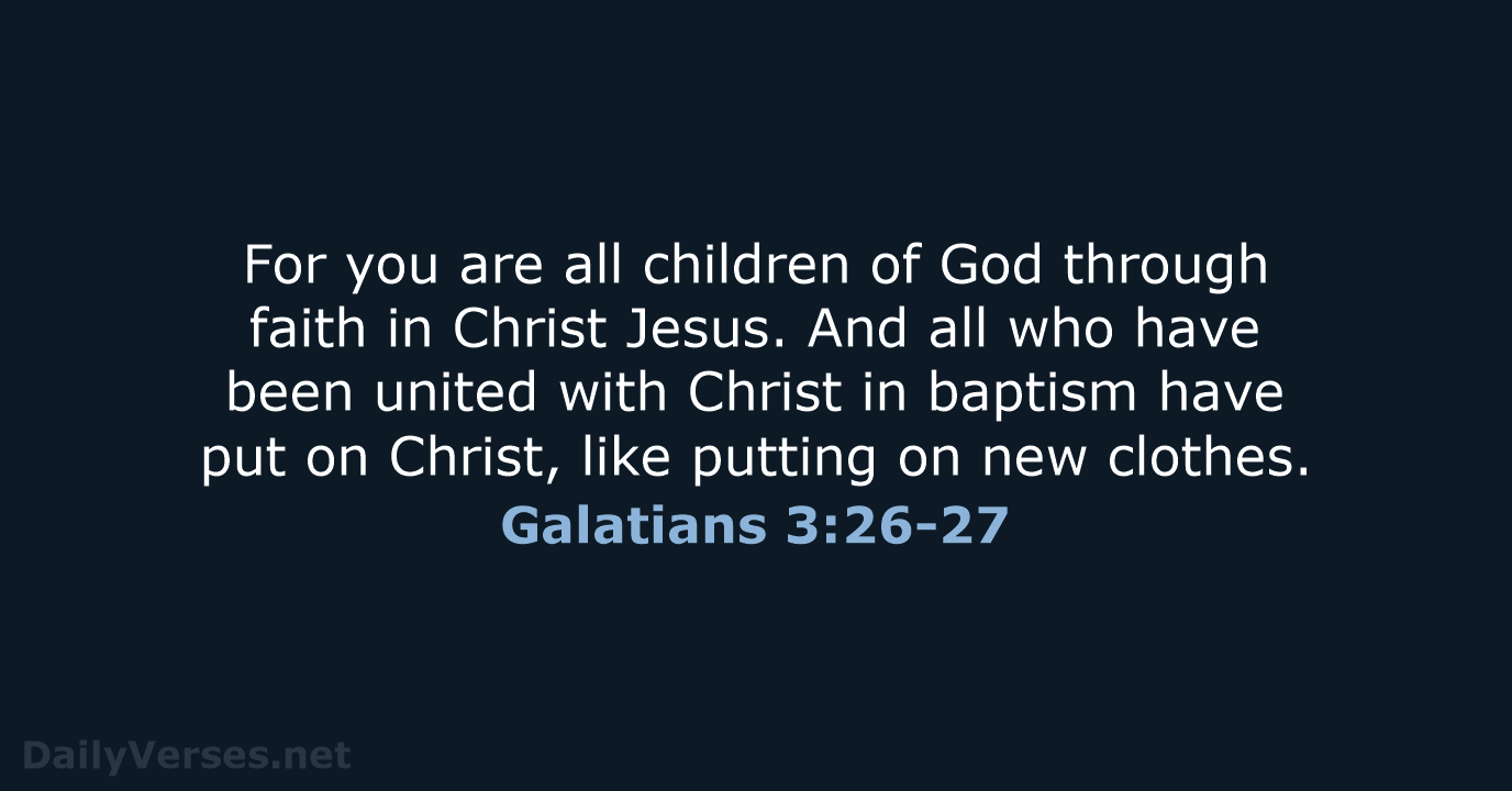 For you are all children of God through faith in Christ Jesus. And all who have been united with Christ in baptism have put on Christ, like putting on new clothes. - Galatians 3:26-27 NLT