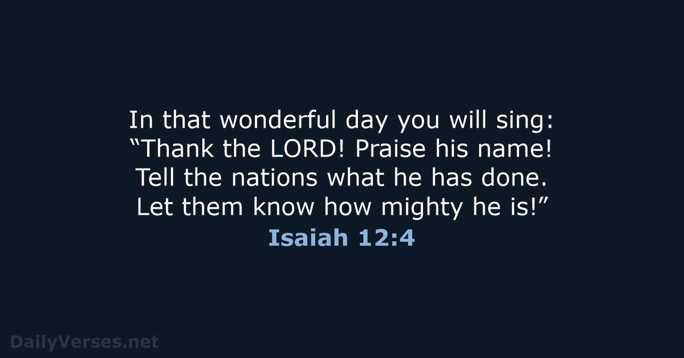 In that wonderful day you will sing: “Thank the Lord! Praise his name! Tell the nations what he has done. Let them know how mighty he is! - Isaiah 12:4 NLT