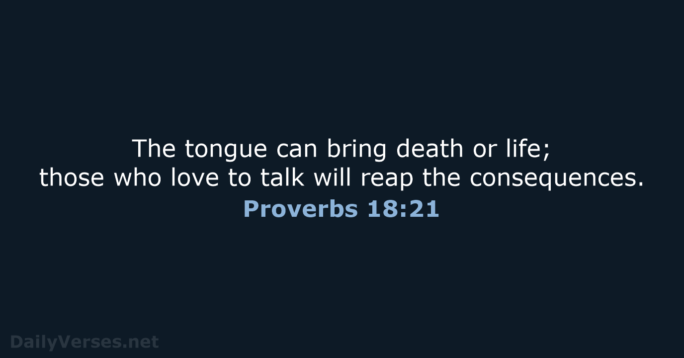 The tongue can bring death or life; those who love to talk will reap the consequences. - Proverbs 18:21 NLT