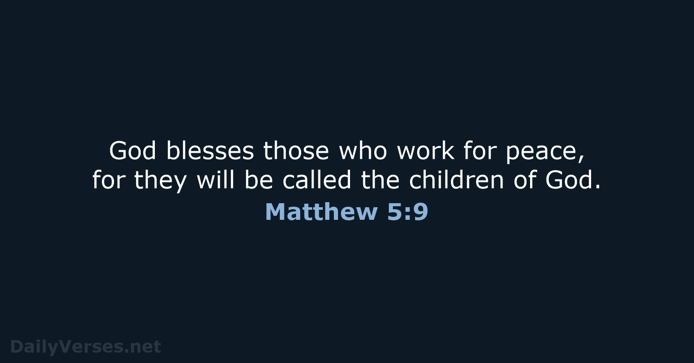God blesses those who work for peace, for they will be called the children of God. - Matthew 5:9 NLT